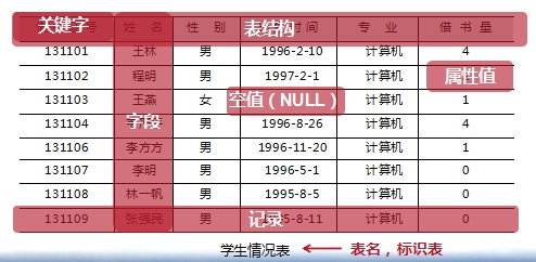 注意:表包含的一些内容:表结构、关键字、记录、字段、属性值、空值......
