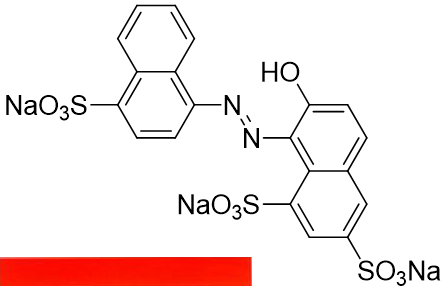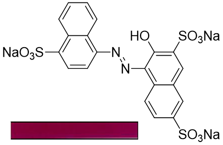 合成色素:结构多为偶氮类,色彩鲜艳,坚劳度大,性质稳定,着色力强,本身无营养价值。