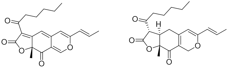 红曲色素主要用于腐乳、酱鸭及食酱,腐乳中使用星为2%、酱鸭中为1%。红曲色素中红斑素及红曲红素,结构式为: