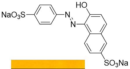 又称酒食黄,是3-羧基-5-羟基-1-(对-磺酸基)-4-(对-磺苯基偶氮)-邻氮茂的三钠盐。耐氧化性差,遇碱微变红,用于果汁饮料、糕点、腌制小菜等的上色。