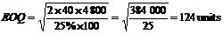 Now, let us apply the EOQ model todetermine the best ordering policy for the situation described in Figure 2.4: C= $100 per unit, V = 25 percent, S= $40, D = 4,800 units.