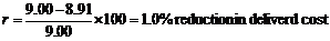 If the company shipped in quantities of 40000 pounds or more, the cost per case would be $.91 ($3.64/ 100 lbs. ´25 lbs).The percentage price reduction, r, made possible by shipping at thelowest freight cost is: