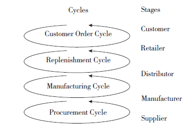 Based on the five stages in a supply chain shown in Figure 8.2, all supply chain processes can be broken down into four process cycles, including customer order cycle, replenishment cycle, manu-facturing cycle and procurement cycle (Figure 8.3).