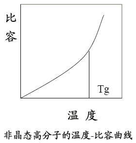 非晶态高分子没有熔点,在比容-温度曲线上有一转折点,此点对应的温度称为玻璃化转变温度,用Tg表示。它代表链段能够运动或主链中价键能扭转的温度。高分子可以是完全的非晶态。