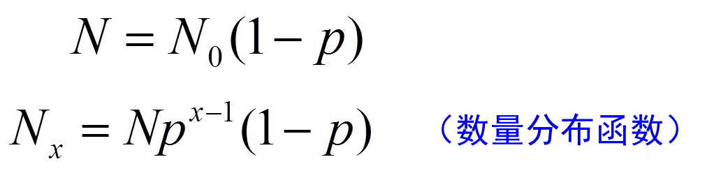 设:聚体数为Nx, 体系分子总数为N, 起始单体总数为N0,则有:
