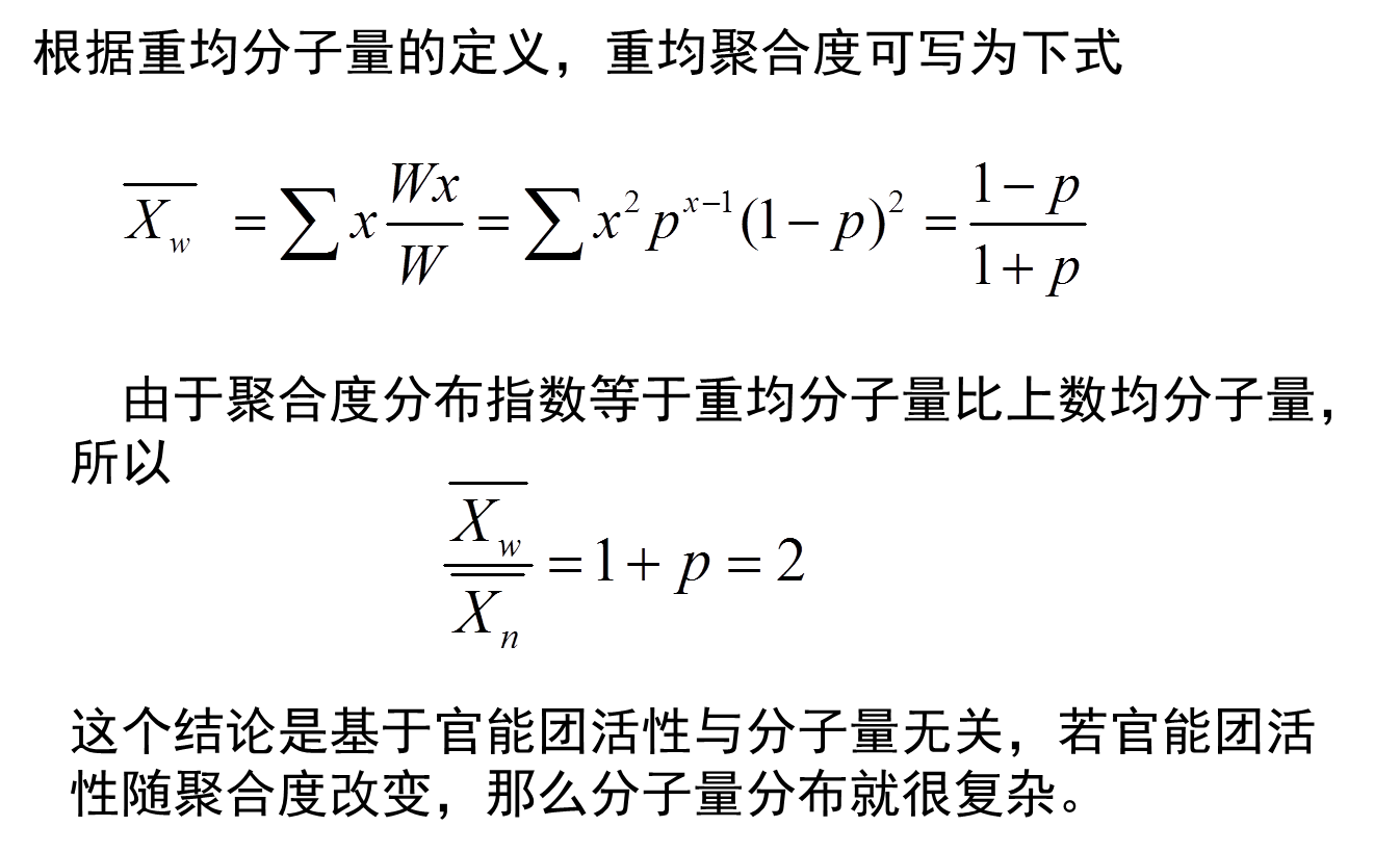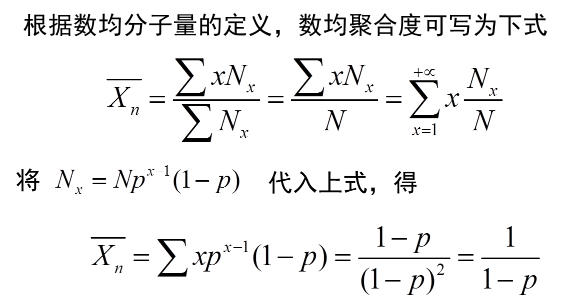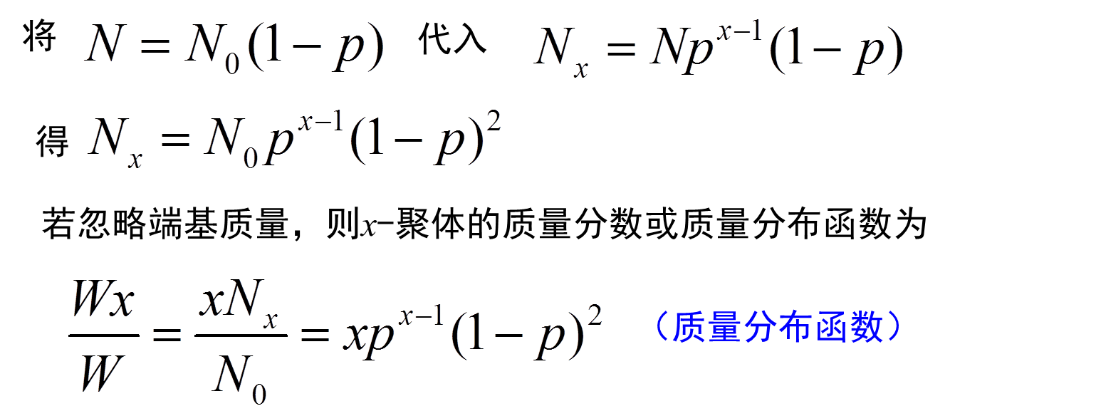 x聚体含x个结构单元:成键x-1次,未成键1次。则x聚体生成的几率为