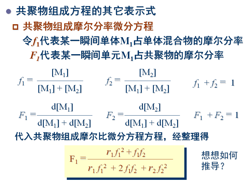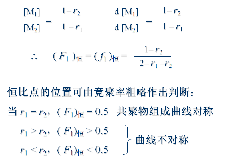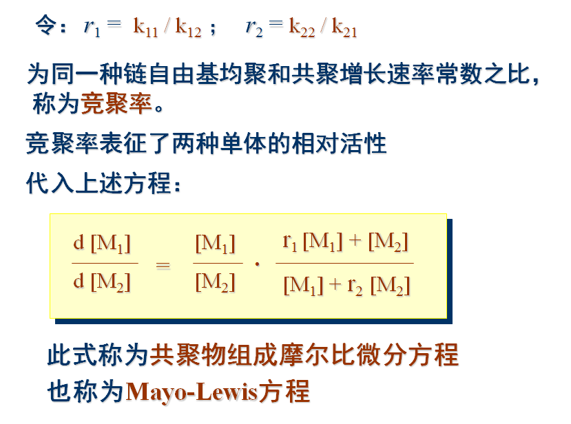 1944年,由Mayo和Lewis推导出共聚物组成与单体组成的定量关系式