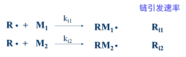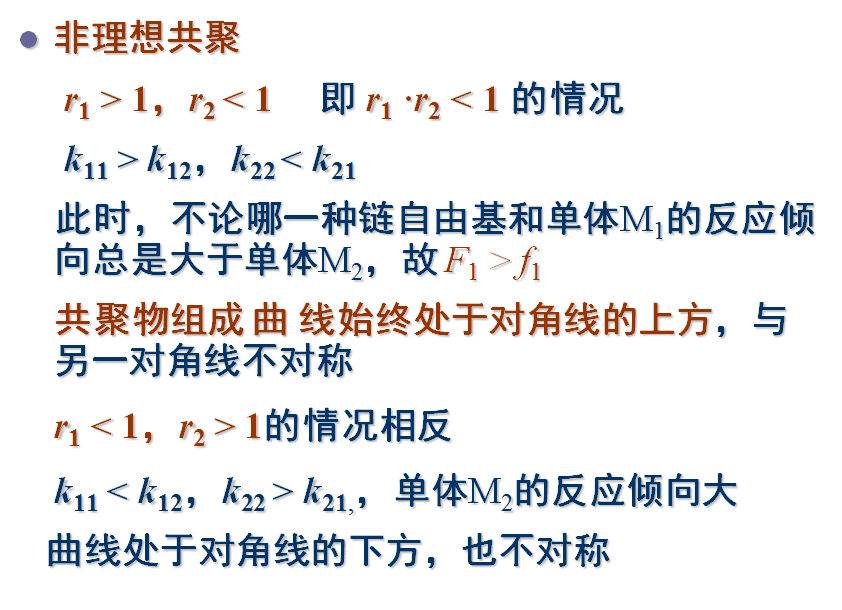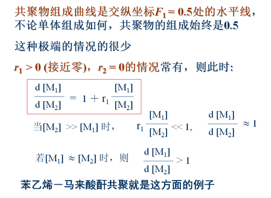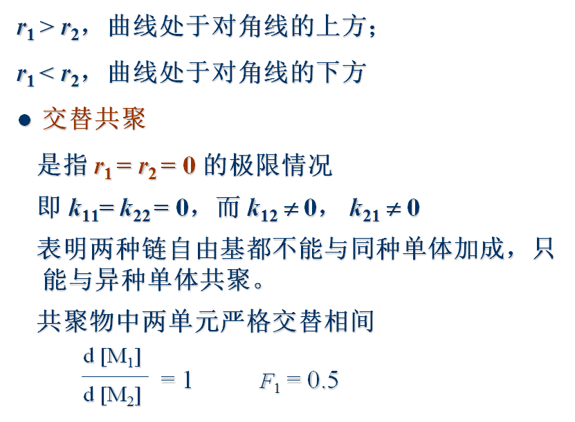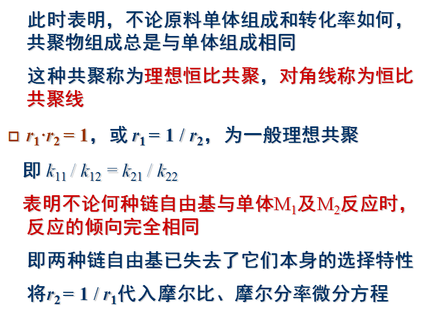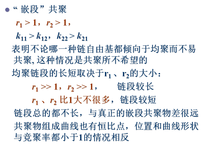 3)共聚物的聚合度很大,其组成由链增长反应所决定,引发和终止对共聚物组成无影响
