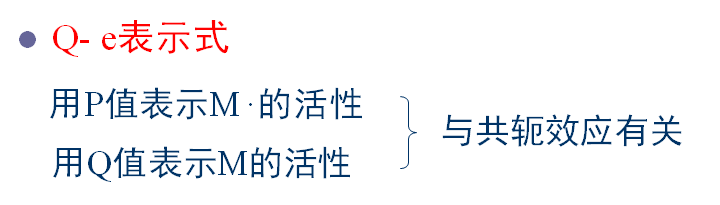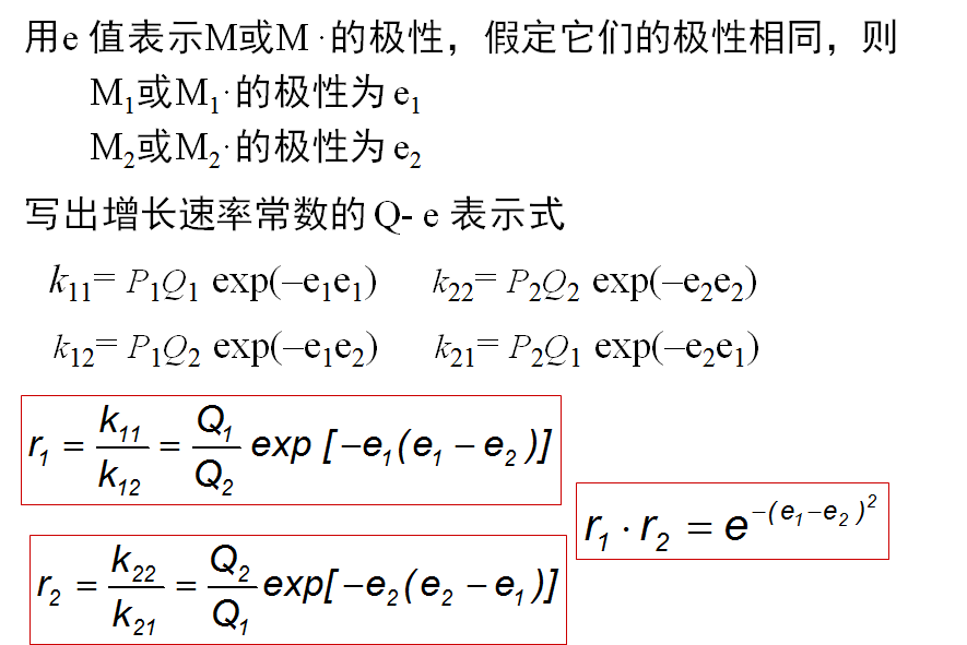 1947年,Alfrey和Price建立了Q-e式,提出:在单体取代基的空间位阻效应可以忽略时,增长反应的速率常数可用共轭效应 (Q),和极性效应(e)来描述。