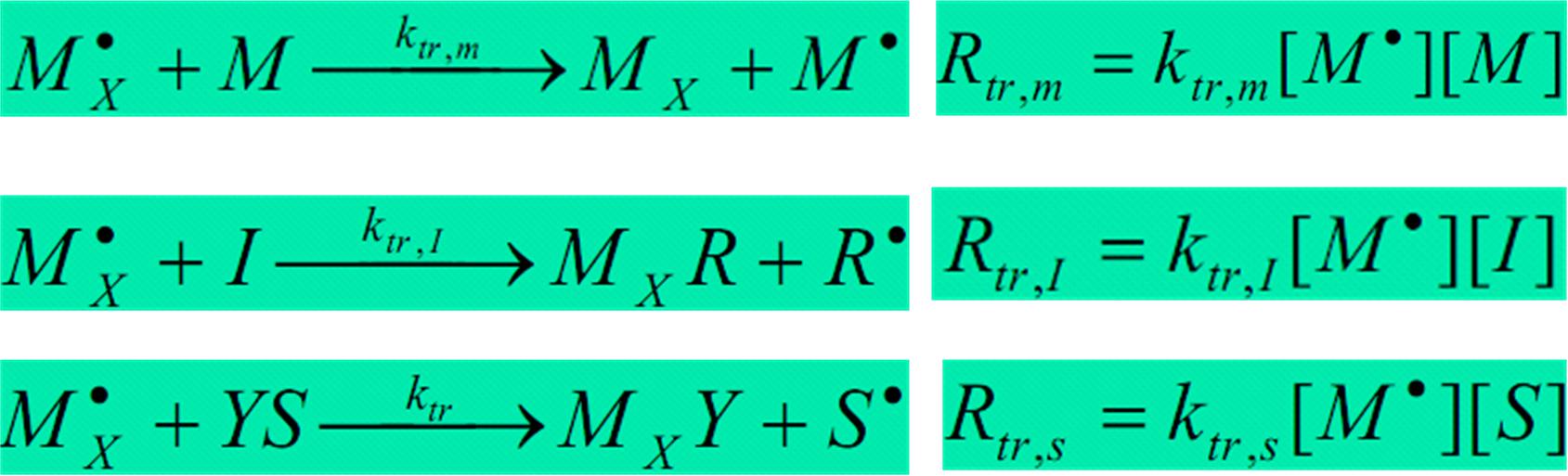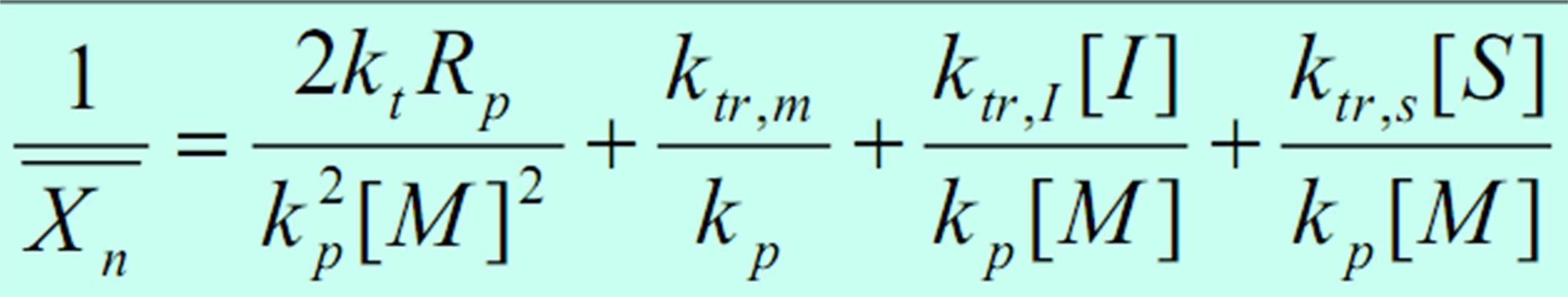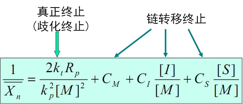 平均聚合度是使分子链变大的链增长反应速率与所有形成大分子的反应速率之比。使链增长反应停止,形成大分子的反应主要包括链终止反应与链转移反应两个部分。据此,可以得出如下公式: