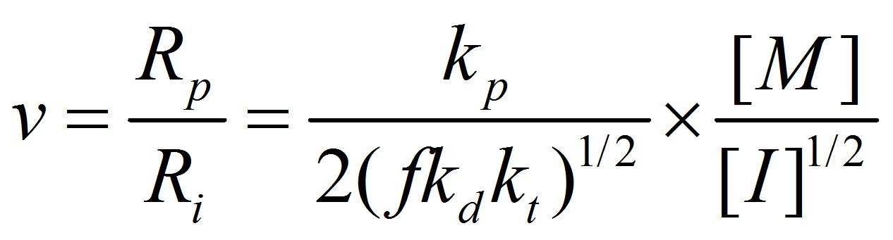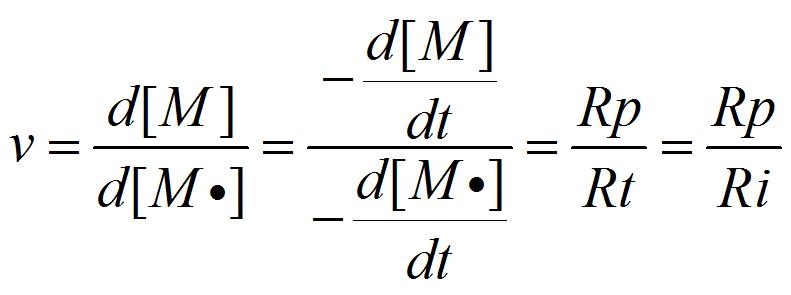 动力学链长的定义:每个活性种从引发阶段到终止阶段所消耗的单体分子数。由此,动力学链长的定义式可以表达如下: