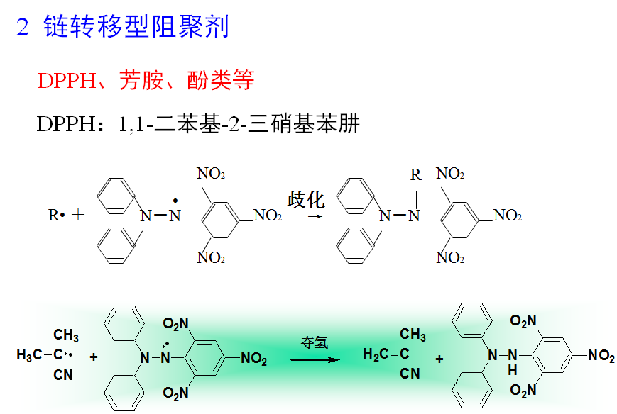 阻聚剂根据结构型式可分为分子型与自由基型阻聚剂。按反应机理分(阻聚剂与自由基进行加成反应、链转移反应和电荷转移反应 )。