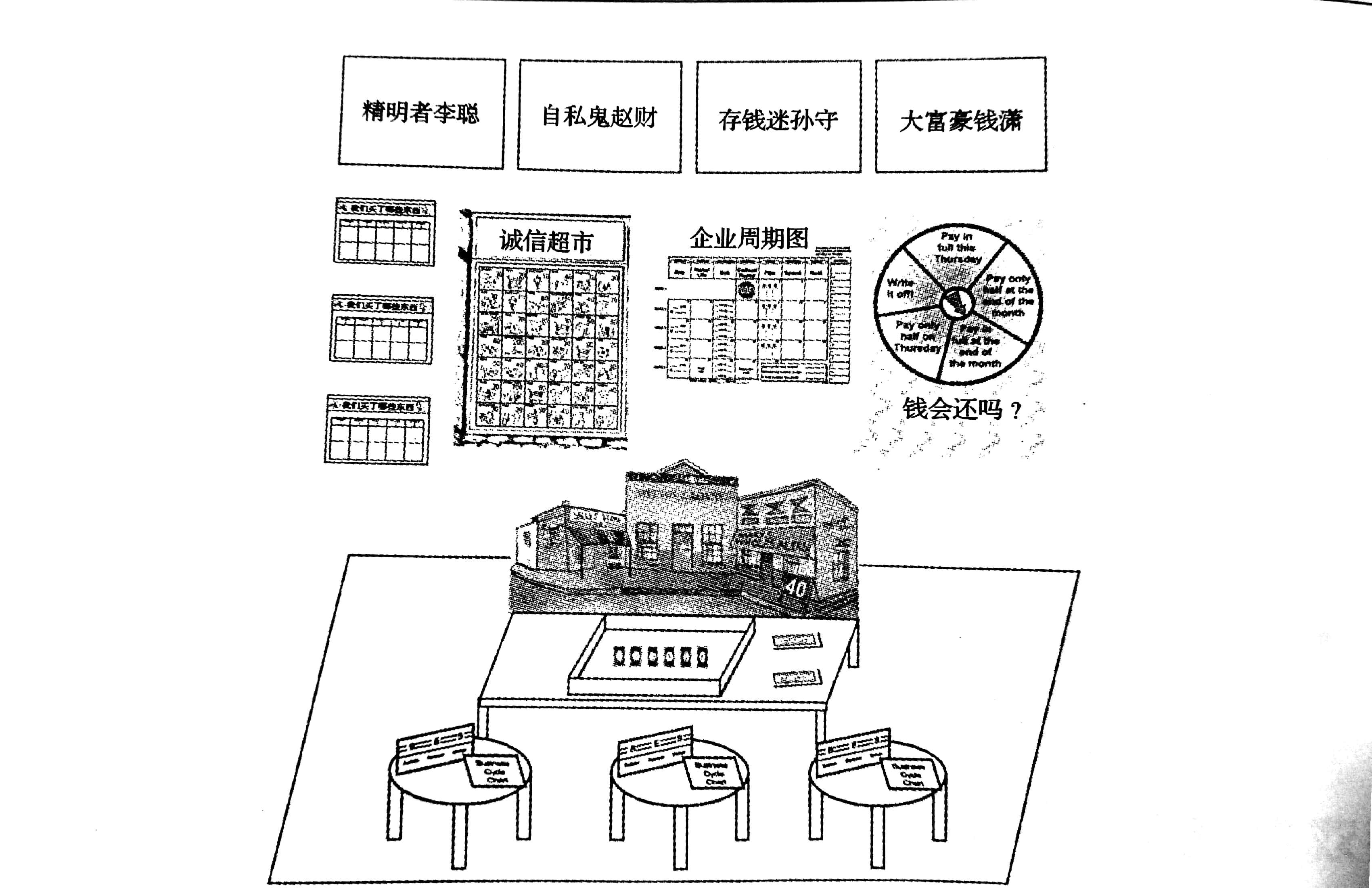 星期二:各组生产帽子。从第三周的星期二开始使用情景卡。如果情景卡要求该组向外借钱,该组必须转动“钱会还吗?”的指针。