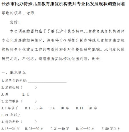 许多特殊儿童心理与教育研究实践表明,在同一项研究中同时使用质与量的研究方法是完全可行的。通过质的研究,可以判定有关现象是否存在、结构如何、各要素之间具有何种联结等,并对各现象的意义作出合理的解释,它往往奠定了研究的总体框架,决定了研究的大致发展方向与趋势,为量的研究确定了基础与内容。在特殊教育研究中,量的研究往往可对整体研究中某些局部作进一步补充与深化,探索变量间的因果关系,提高研究的信度与效度。