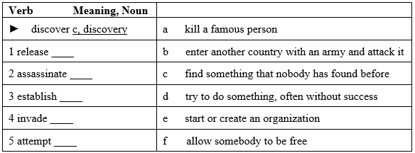 1 Cover the table above. Match 1-5 with a-f. Then write the nouns formed from each verb in the third column.