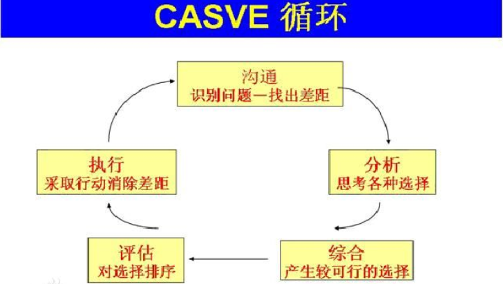 CASVE循环包括五个阶段:沟通、分析、综合、评估和执行,CASVE就是这五个词的英文单词首字母。它可以在整个职业生涯问题解决和决策制定过程中为你提供指导。