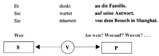 Einige Verben nutzen Ergänzungen mit Präpositionen. Das bedeutet, dass das Verb nur in Kombination mit dieser Präposition eine bestimmte Bedeutung hat.