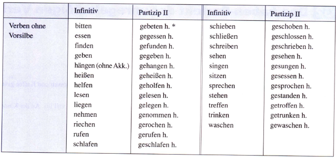 Starke Verben bilden das Partizip II mit ge…en. 强变化动词的第二分词为ge...en。