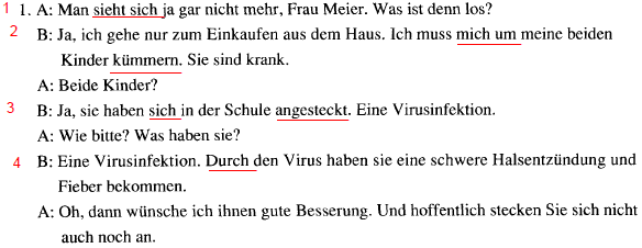 1. 假反身动词,能够表达交互关系。此句的意思是Meier夫人,最近完全都见不到你了。