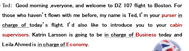 Good morning, ladies and gentlemen, welcome aboard flight 204 to Auckland. We're looking forward to making this a smooth boarding and on–time departure. Please step out of the aisle as quickly as possible after placing your bags in the overhead lockers.