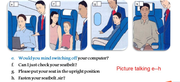 我们的飞机很快就要起飞了,请您配合客舱乘务员的安全检查,系好安全带,收起小桌板,调直座椅靠背,靠窗边的旅客请您协助将遮光板拉开。谢谢您的合作!祝您旅途愉快!