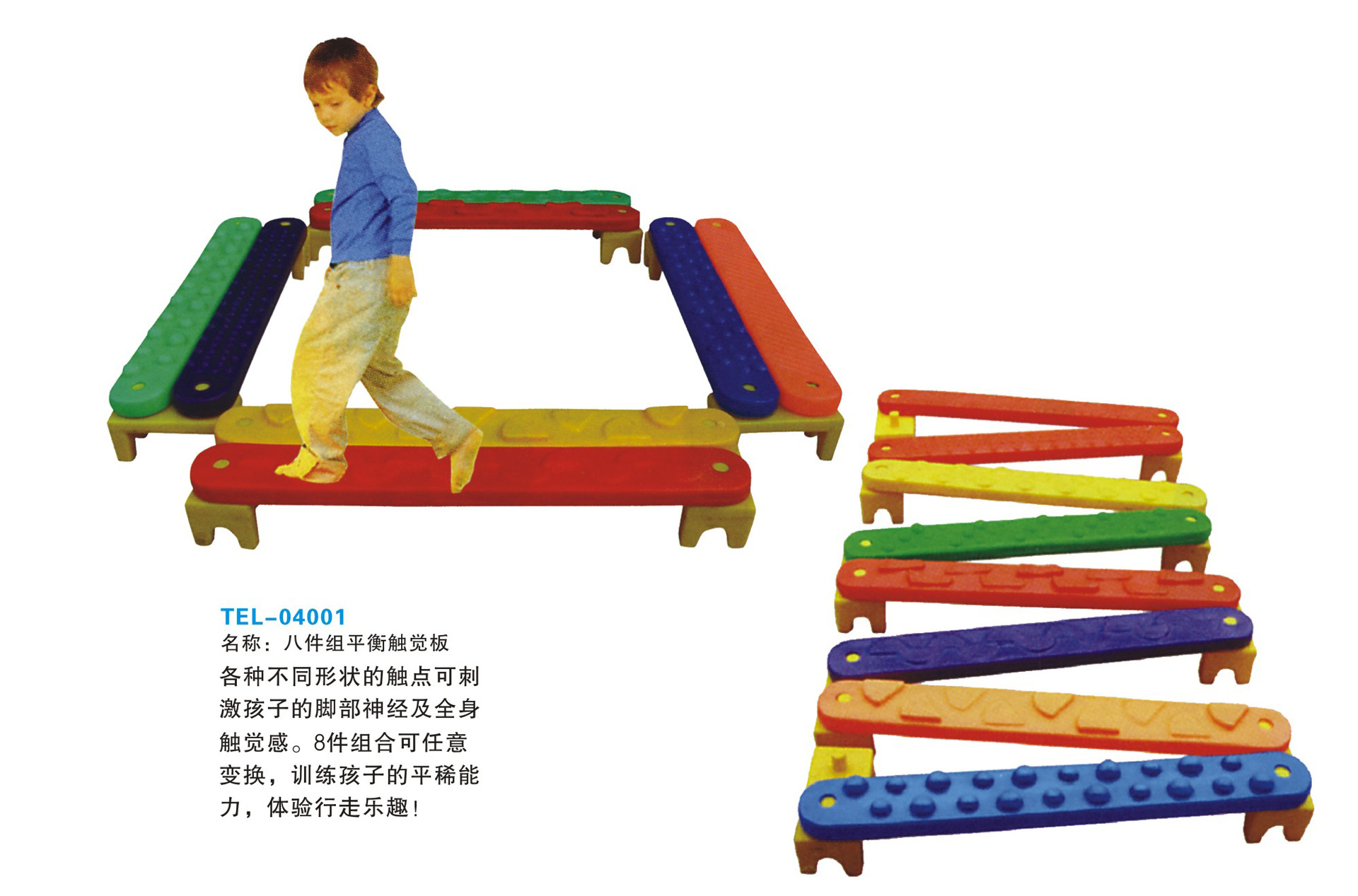 训练要点:主要对孩子平衡、触觉方面进行锻炼。它可以摆成不同的形状,让孩子在上面走,使脚底得到按摩,促进血液循环。