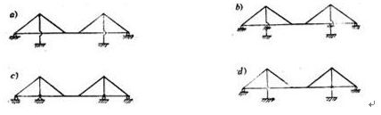 a)悬浮体系;b) 支承体系;c) 塔梁固结体系;d) 刚构体系