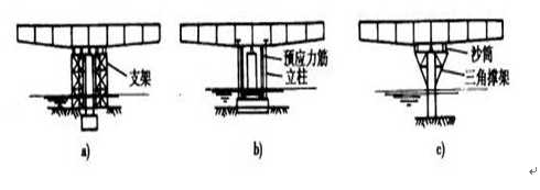 2)在桥墩一侧或两侧加临时支承或支墩。