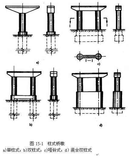 柱式桥墩是目前公路桥梁中广泛采用的桥墩型式。它具有线条简捷、明快、美观,既节省材料数量又施工方便的特点,特别适用于桥梁宽度较大的城市桥梁和立交桥。