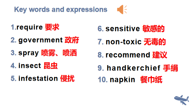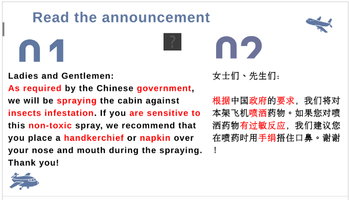 Task 1 FIF 课前精读词汇+航班转港广播词-喷洒药物