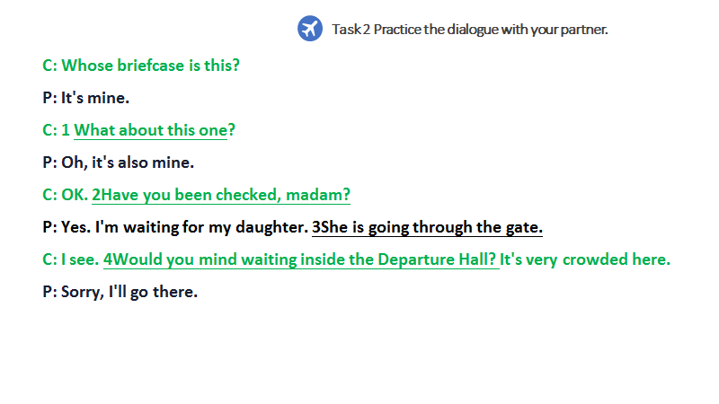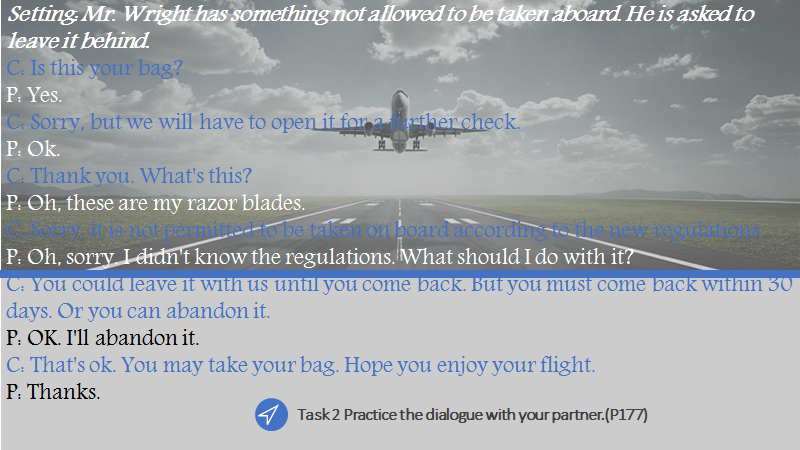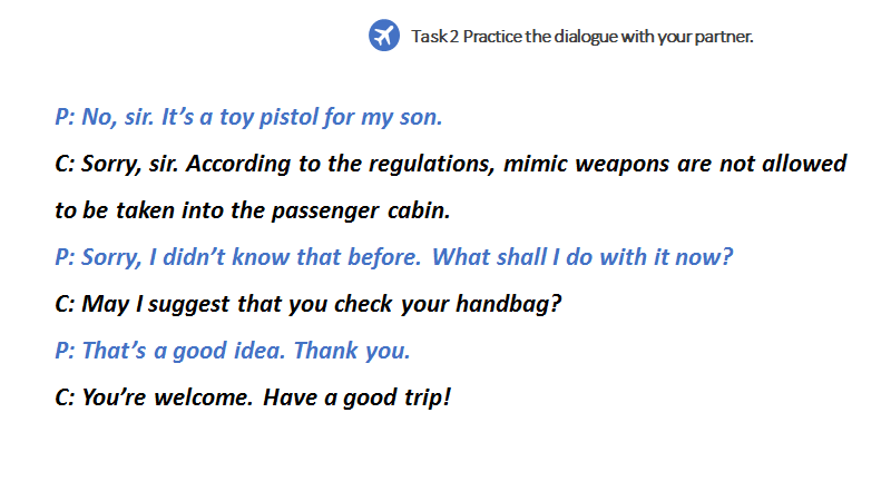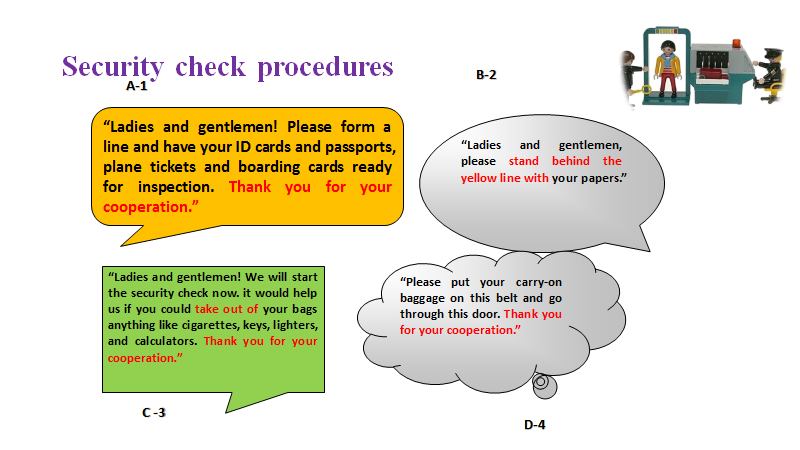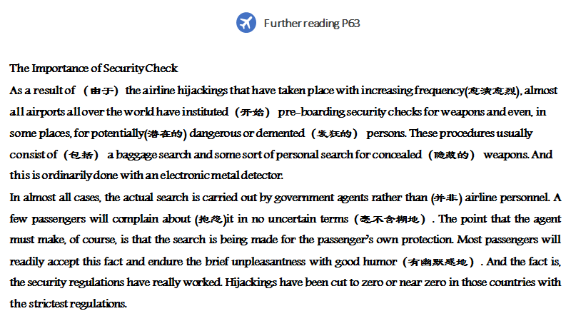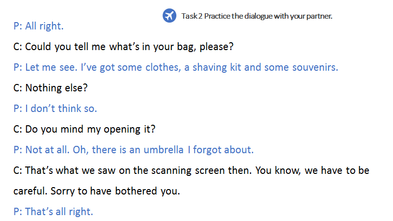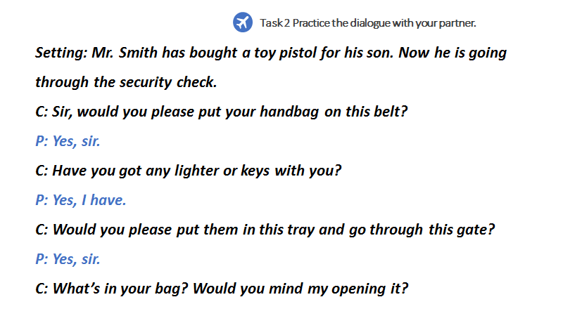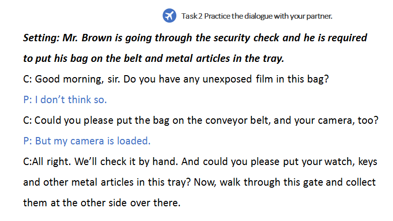 Read the statements below and discuss with your partner about the security check procedures. (P52)
