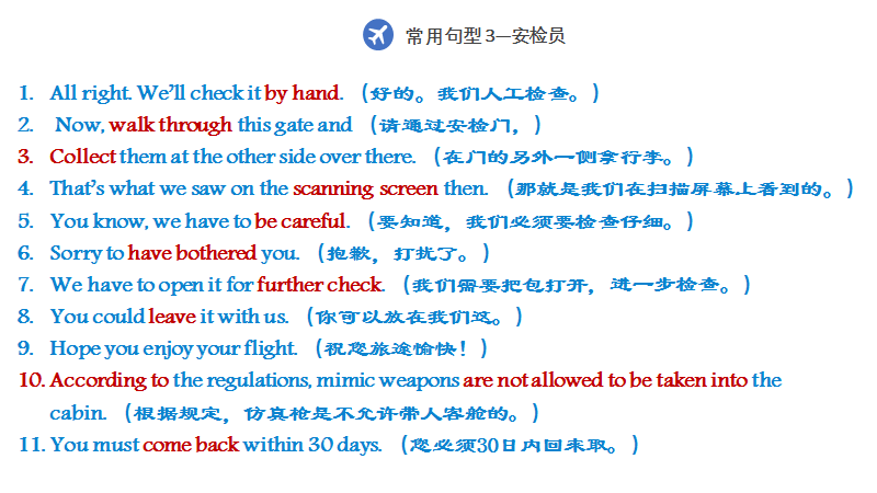 (3) For information about passengers' checked luggage, please refer to the airline's ground service department.