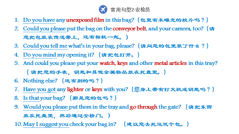 (1) Beijing Capital Airport Security Check Station welcomes any comments or suggestions on any aspect of our service.