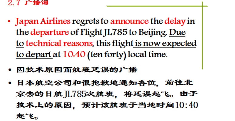 Task 1 FIF 平台精读词汇(广播词-日航航班延误)