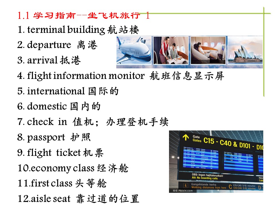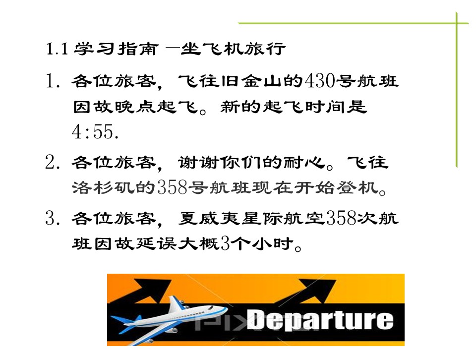 听力训练:核心词汇,常用句型的听写,航班咨询听力训练