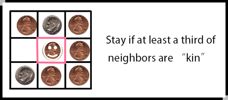 Schelling (1971) demonstrates a theory to explain the persistence of racial segregation in an environment of growing tolerance