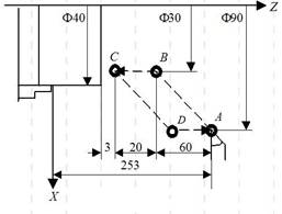 根据图3.1运用快速点定位G00指令进行程序编写。