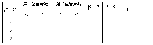 (3)旋转载物台,使双面反射镜转过180°,则望远镜中所看到的绿十字像可能又不在准确位置,我们再采用各半调节法。使绿十字像水平线与分划板上方的水平线重合。