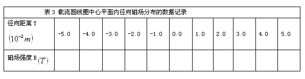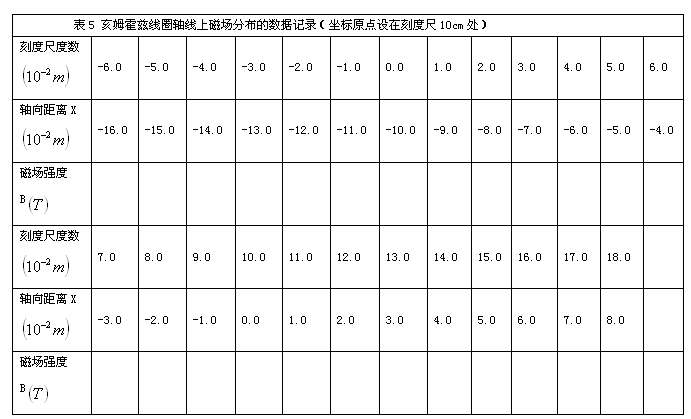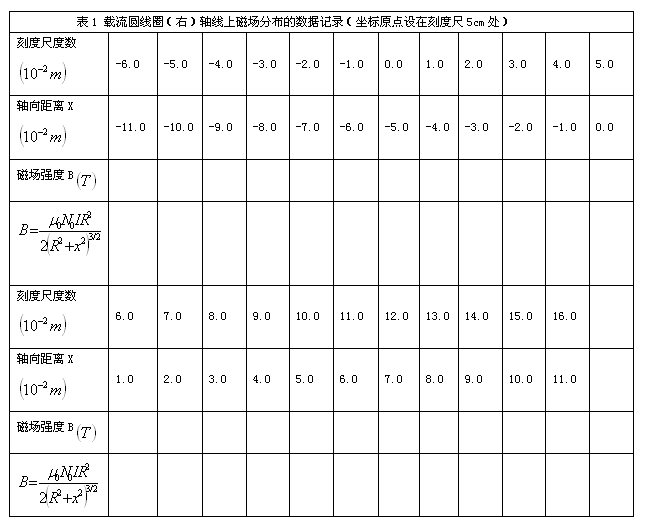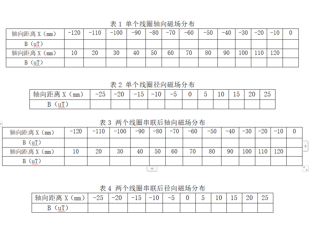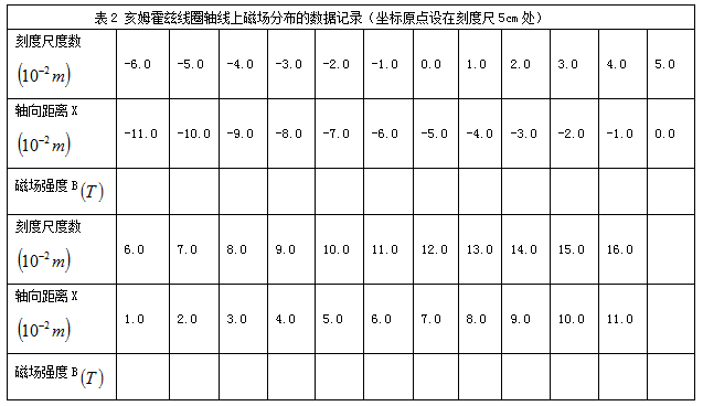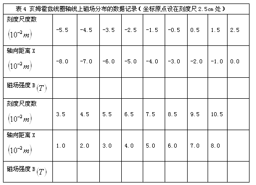 (3)使励磁电流I=0.400A,以圆电流线圈中心为坐标原点,每隔1.0cm测一个B值,测量过程中注意保持励磁电流值不变;