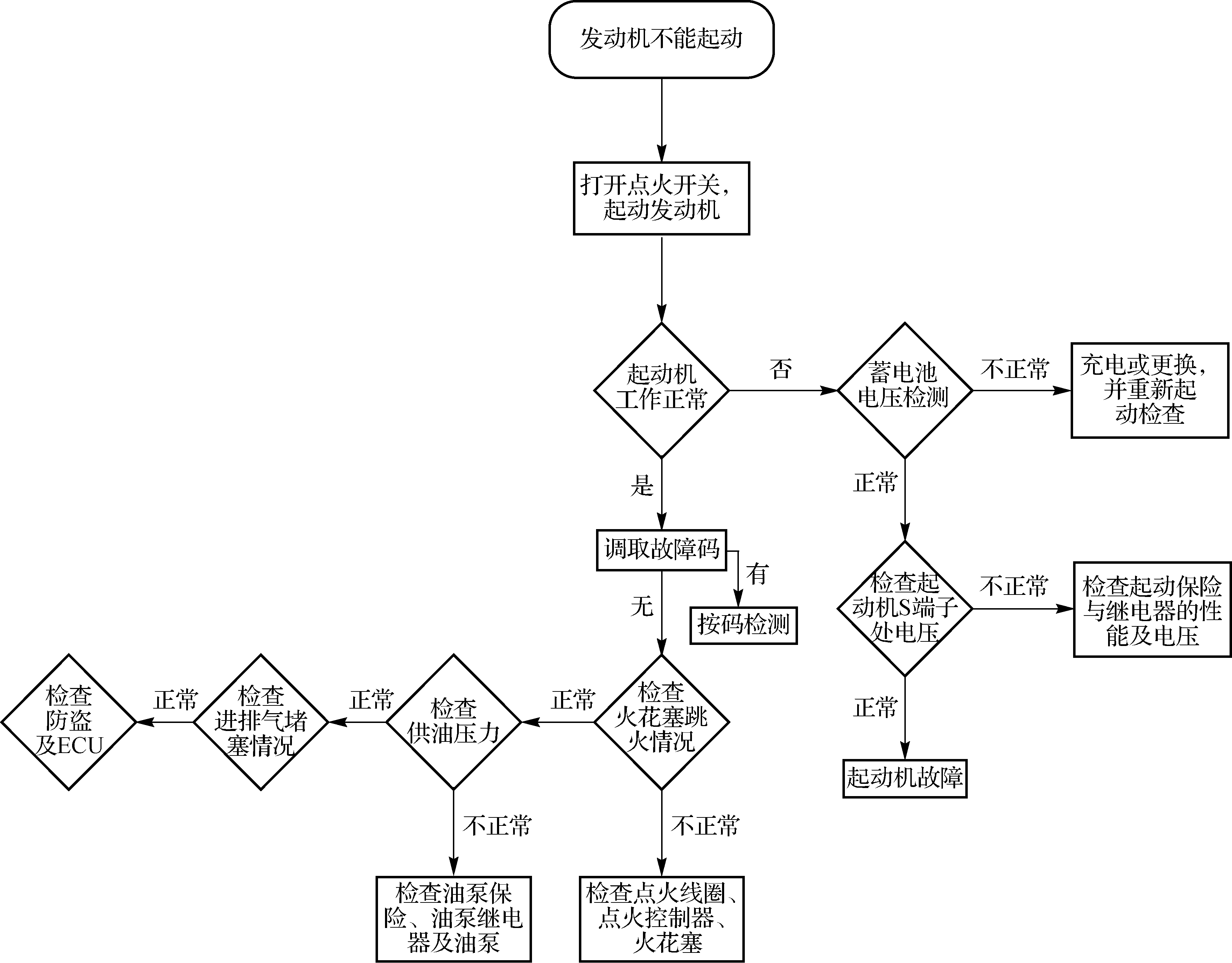 图1-3 汽车不能起动的故障诊断流程图