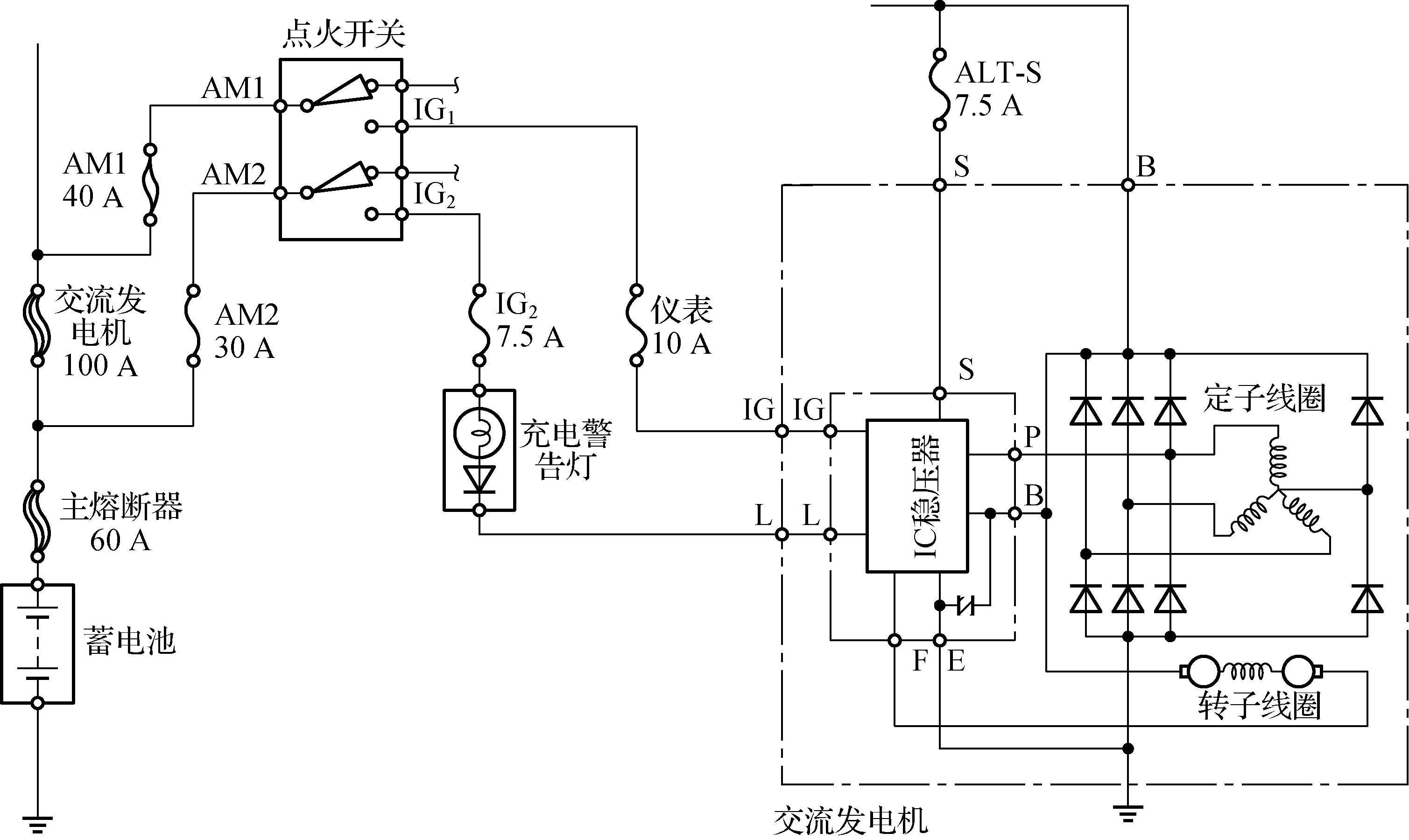 以捷达轿车充电、起动、点火系统的整体式交流发电机为例,如图2-9所示。
