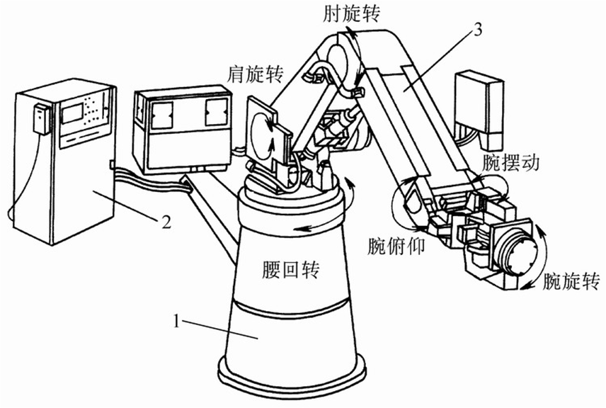 2)手腕是连接手臂和末端执行器的部件,用以调整末端执行器的方位和姿态。