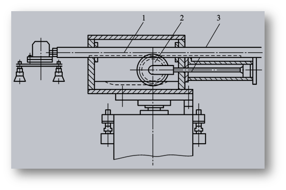 1—运动齿条;2—齿轮;3—活塞杆