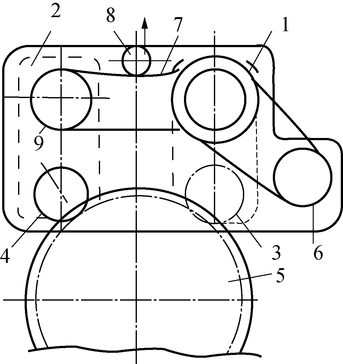 图(b)1,2—齿轮箱;3,4,5—齿轮;6—电动机; 7—同步带;8—压紧轮;9—同步带传动
