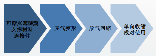 气动肌肉承受负载的构件(丝、纤维) 嵌入到弹性薄膜里。