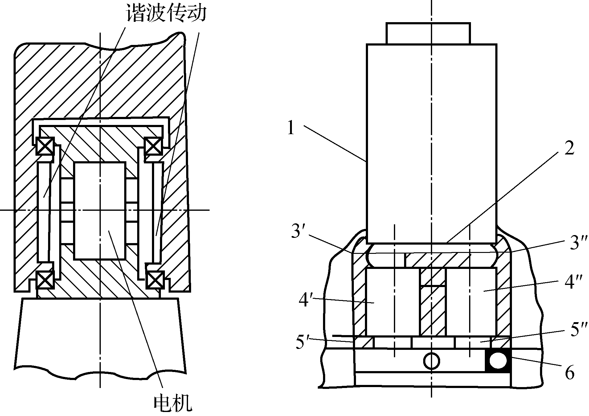 图(a)1—电动机;2—小齿轮;3',3"—减速传动齿轮;4' ,4"—轴;5',5"—齿轮;6—齿轮