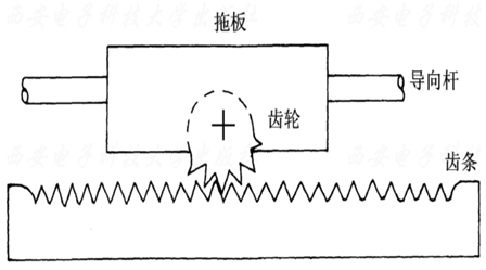 齿条固定不动,当齿轮传动时, 齿轮轴连同拖板沿齿条方向做直线运动,如图2.8所示。