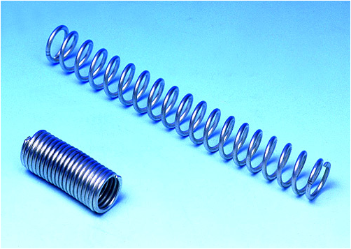 上图是一个双程CuZnAl记忆合金弹簧,它是SMA用作驱动器的典型形式。该弹簧是随温度变化自行伸缩的感温驱动元件。采用CuZnAl记忆合金丝,表面镀锡,以热水或热风为热源,典型伸缩温度为65℃~85℃,自由状态为45mm,伸长状态为200mm。 可见其形变量较大,可以产生足够的驱动力。