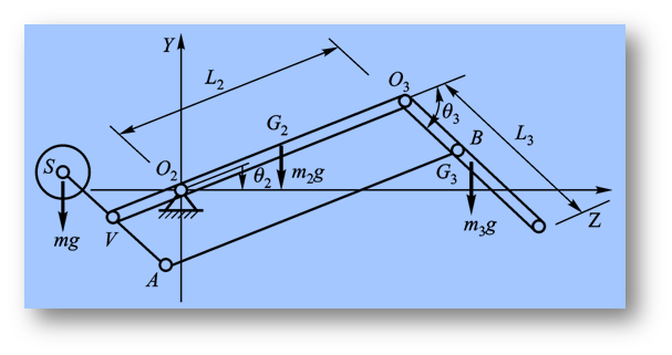 弹簧平衡一般可以使用长弹簧。分析表明,在关节模型中,只要采用合适刚度和长度的弹簧平衡系统,可以全部平衡关节模型重力项。