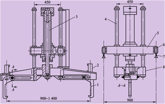 5—运行架; 6—行走车轮; 7—轨道; 8—支座;